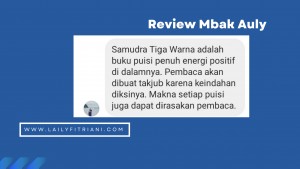 Berikut hasil review antologi puisi Buku Samudra Tiga Warna dari Mbak Auly, Mbak Mutik, Mas Dika, dan Mas Dihyat.