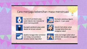 - Pengelolaan kebersihan dan kesehatan pada saat perempuan mengalami menstruasi.