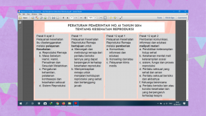 Senada dengan hal tersebut diatas, Ibu dr Dwi menyampaikan bahwa pemerintah sangat mendukung adanya kesehatan reproduksi perempuan yang tercantum dalam Peraturan Pemerintah. No. 61 Tahun 2014, sebagai berikut: