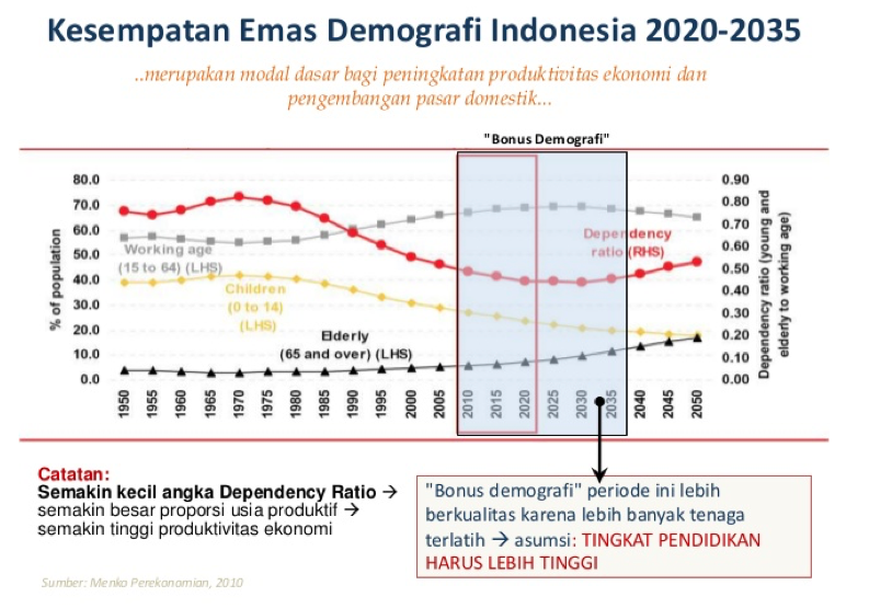 Merujuk pada bonus demografi Indonesia yang diperkirakan pada tahun 2020-2030 penduduk usia produktif di Indonesia akan mencapai 52 persen dari total jumlah penduduk Indonesia, yang artinya bahwa jumlah generasi muda akan meningkat dan Indonesia harus siap memiliki kualitas sumber daya manusia yang baik, sehingga dengan demikian, jumlah penduduk aktif di Indonesia akan menjadi sebuah harapan dan modal yang positif bagi masa depan Indonesia untuk menuju Indonesia emas 2045, dimana semua generasi muda adalah generasi yang aktif dan bersemangat dalam menjalani kehidupan.