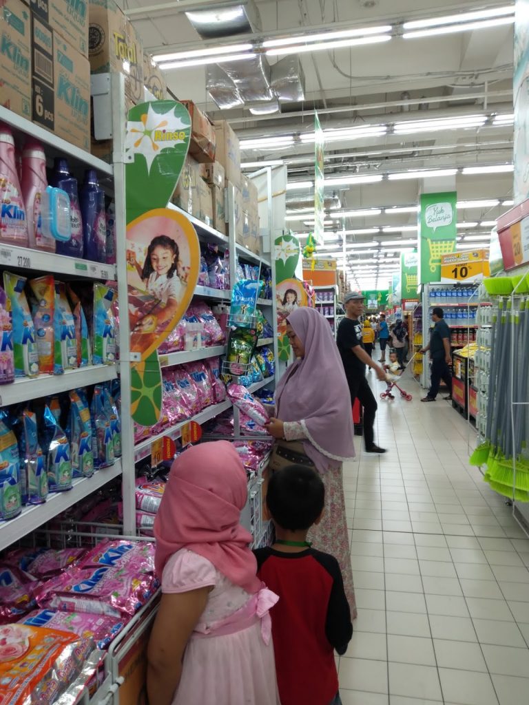 pengennya semua barang masuk troli, hew…hew… padahal aslinya tuh saya just hang out ajah, alias jilong-jilong nyantai, paling banter beli sabun cuci, bumbu-bumbu siap saji, buah-buahan dan makanan untuk anak-anak. Tapi, ketigaanak-anak saya suka banget ke mall. Biasanya mereka bakal beli minuman dan kue-kue kesukaannya. Kalau saya pengennya setiap ke dapur sebuah bumbu ready, hew…hew…emak-emak banget yah.